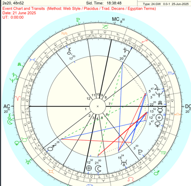 Gemini Mars is in the natal 2nd house, which profects into the 8th, the house of public mortality. Though Mars is peregrine in both Gemini and Virgo and lacks strength, its square with transiting Virgo Mars still acted as a check. It allowed action but prevented escalation. That square may be one reason the attacks resulted in casualties but no deaths.